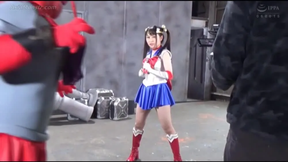 Watch a young Asian performer in an anime-style costume posing and interacting with others in an industrial setting.