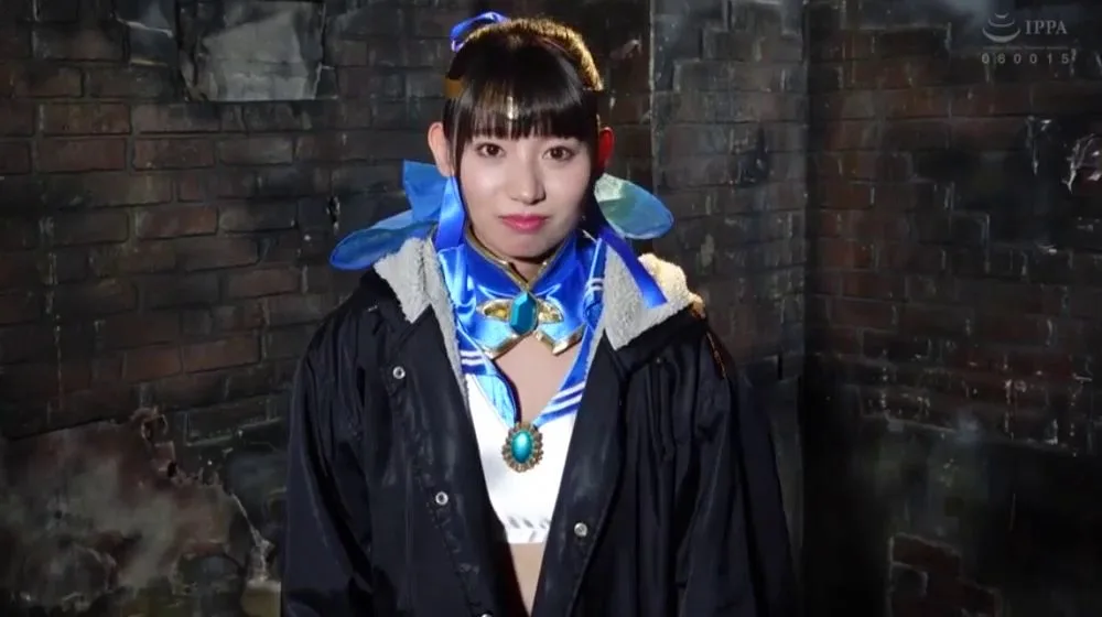 Explore the fantasy world with an Asian performer in anime-style costume, set in an abandoned industrial backdrop, with dim lighting and intense moments.
