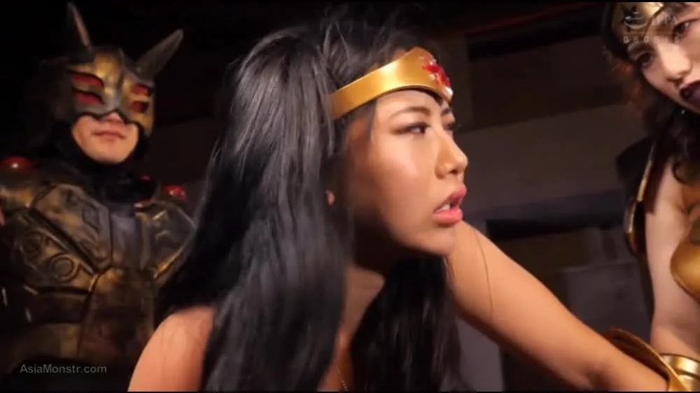 Watch a dark and seductive scene featuring Asian and Caucasian performers in elaborate costumes, posing and interacting in a low-lit setting