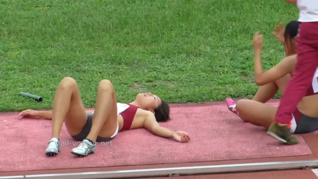 Watch athletic Asian women in sports attire enjoying outdoor activities on a sports track, showcasing their fitness and energy.