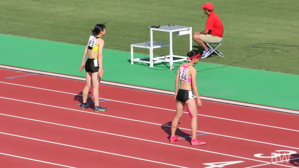 Watch athletic Asian women in revealing sports outfits competing on a track and field, captured in various camera angles and shots.