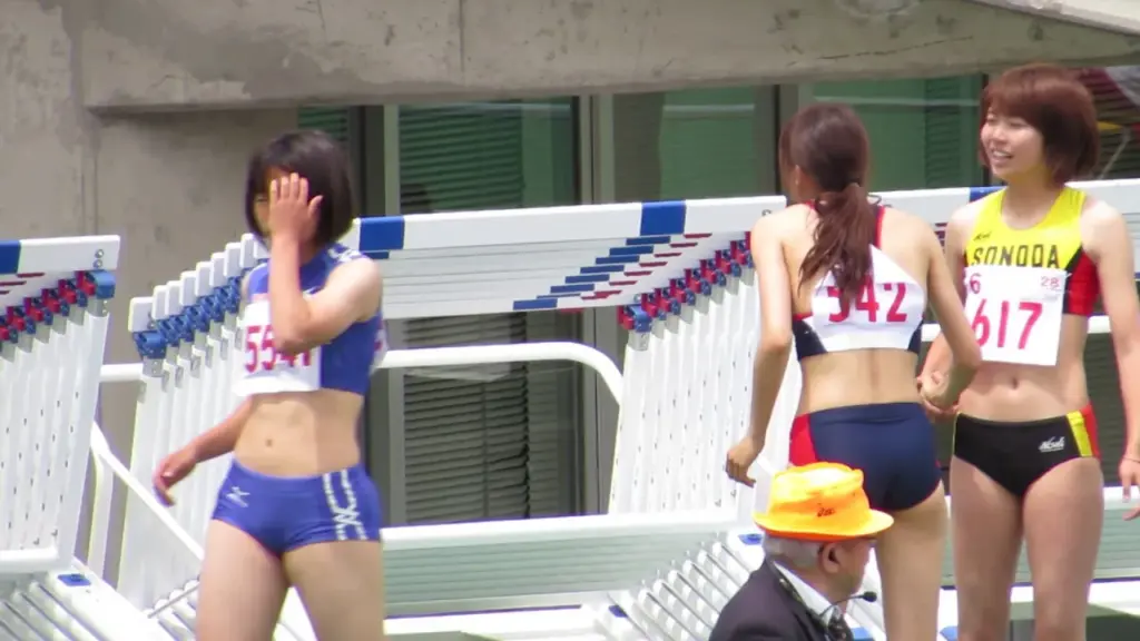 Watch athletic Asian women compete in track and field events, showcasing their skills and physiques in a stadium setting.