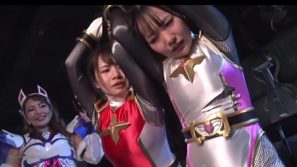 Watch stunning Asian performers pose in elaborate costumes and accessories on a themed set, captured in dramatic lighting.