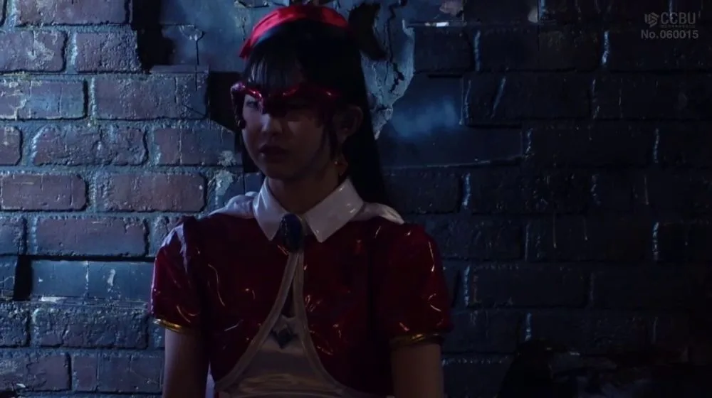 Watch an alluring Asian performer in a red mask and various outfits, posing seductively in an industrial setting and a softly lit room.