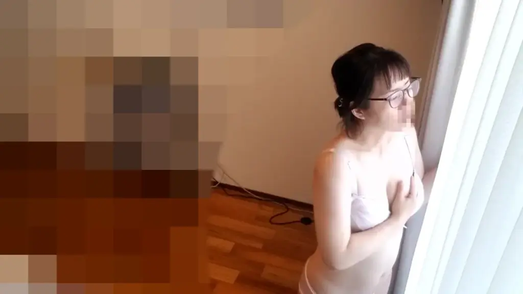 Watch a stunning Asian woman undress and pose nude by the window, showcasing her slim physique.