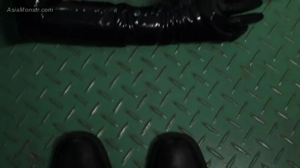 Intimate encounters between Asian performers in latex gloves and masks, in a dark, industrial setting