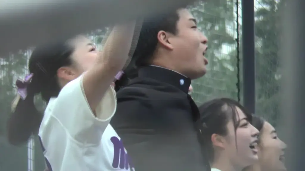 Watch Asian cheerleaders in white outfits cheering at sports events and performing in sports arenas