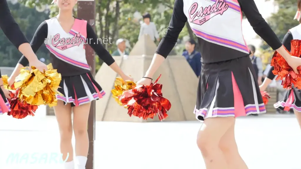 Watch 4 Asian cheerleaders having fun outdoors with pom-poms in this explicit video.