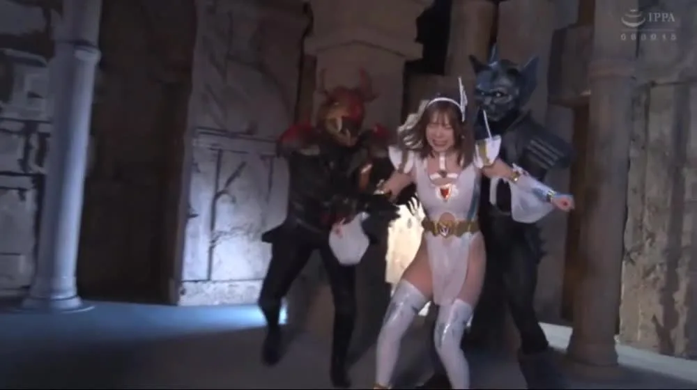 Explore an erotic cosplay scene featuring an Asian woman and muscular men in elaborate costumes and masks