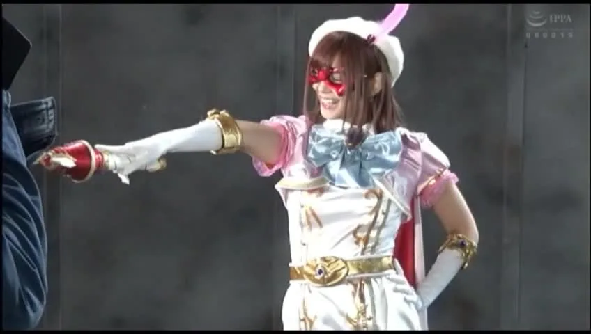 Watch an Asian woman in a white and gold costume fight in an industrial warehouse. Explicit content featuring cosplay and industrial setting.