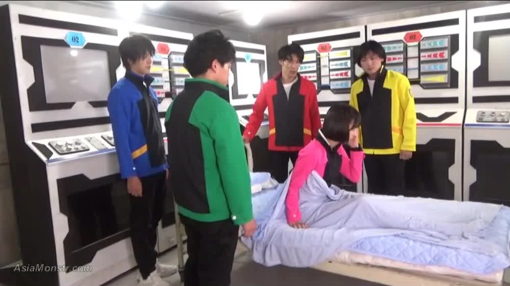 Explore a futuristic world with a group of Asian performers in colorful costumes and helmets. Discover the excitement of their cosplay adventure.