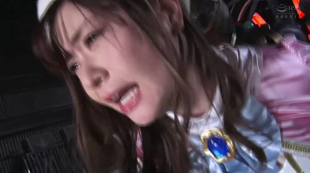 Watch an Asian woman in a silver and pink costume engage in explicit acts with a muscular man in a futuristic industrial setting.