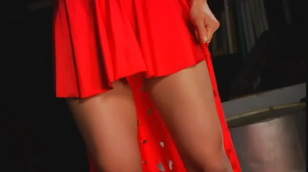 Watch an Asian performer in a revealing costume tease on a dark stage with spotlights, bending and posing for the camera.