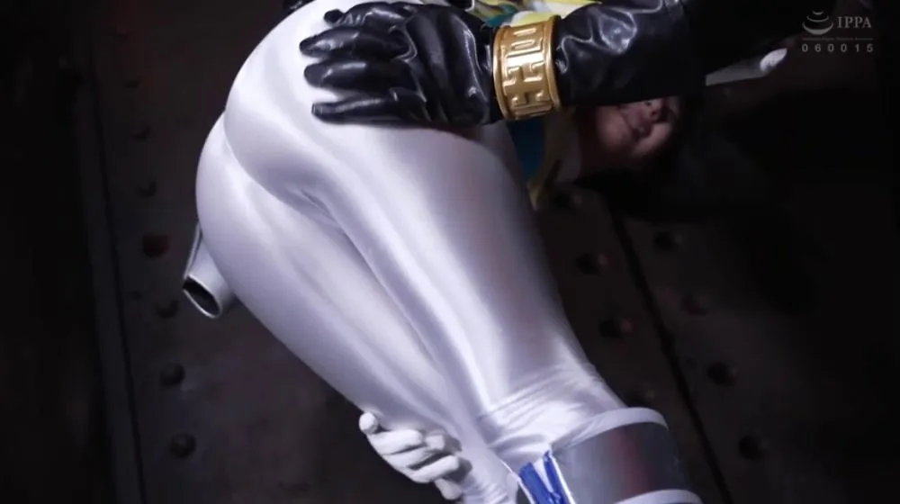 Watch three athletic Asian women in elaborate costumes clash swords in an outdoor setting, then interact in a metallic area