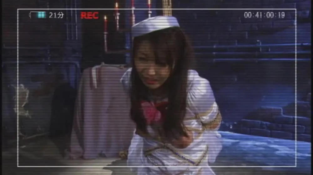 Watch a dramatic Asian couple scene featuring bondage and oral sex in a staged performance area with costumes and restraints.