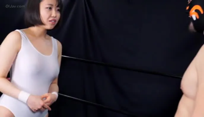 Watch an intense BDSM scene featuring a muscular Asian male and a slim Asian female with black hair and white wristbands.
