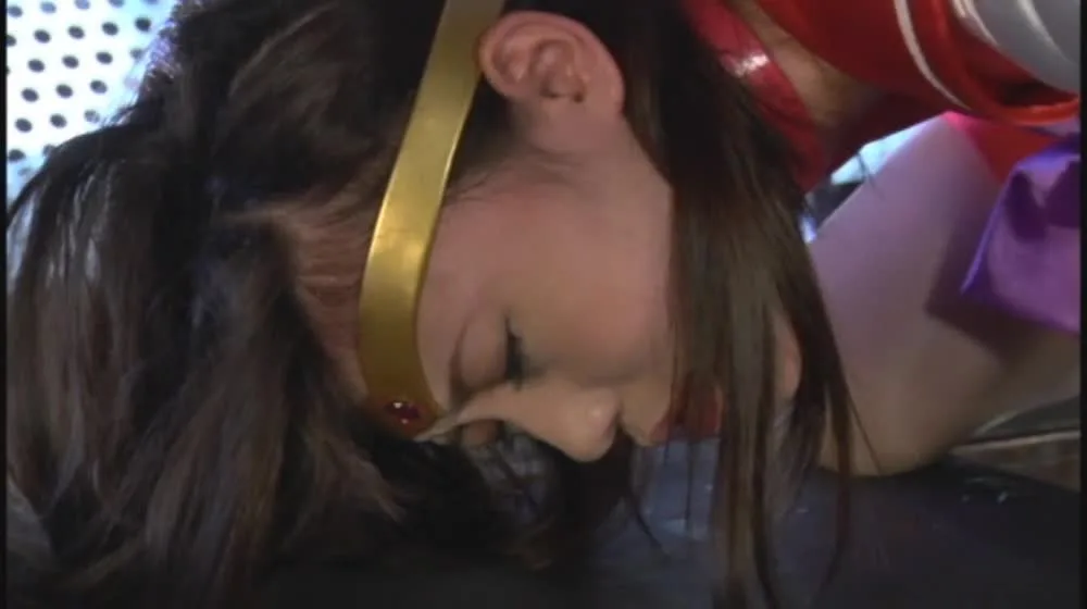 Explore an industrial bondage fantasy with an Asian couple in a red and purple costume, featuring hanging and restraint scenes.