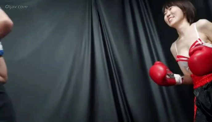 Watch a young Asian couple engage in erotic boxing and sensual positions in a studio setting, featuring a slim woman in a bikini and red boxing gloves.