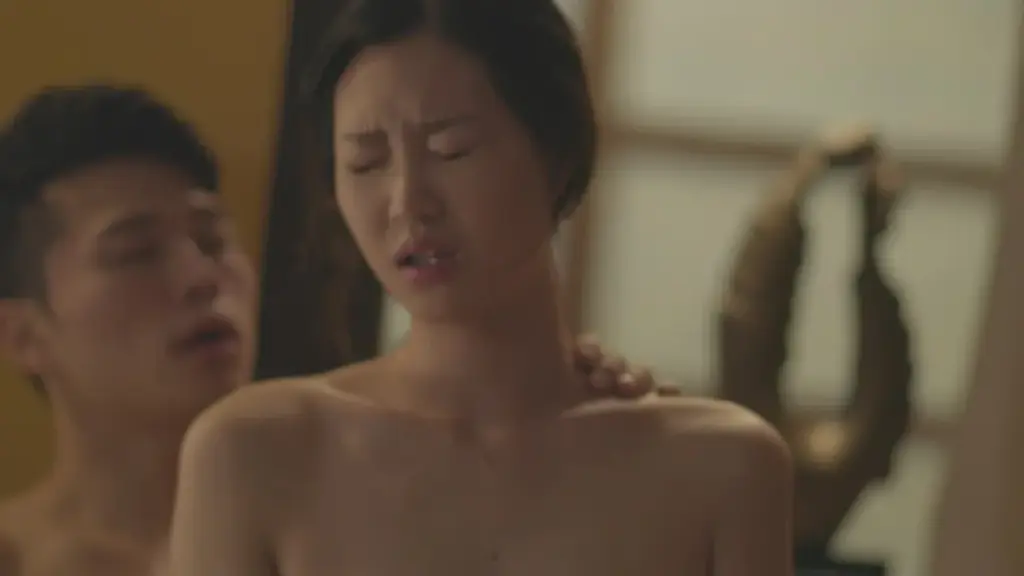 Watch a young Asian couple engage in intimate moments, foreplay, and sexual intercourse in a dimly lit bedroom with lingerie and flowers.
