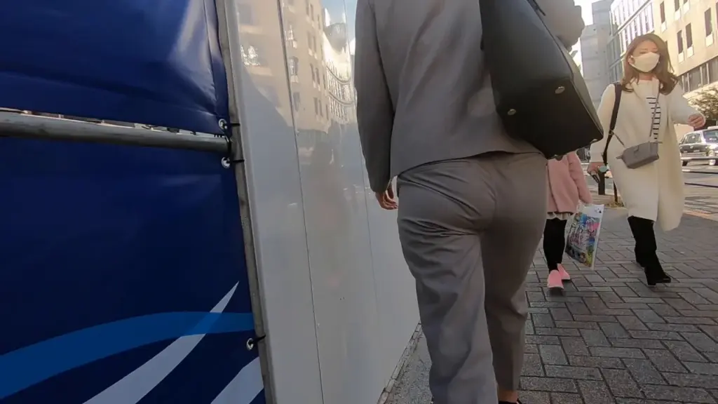 Watch Asian couple and individuals walking on a city street in natural daylight, captured in medium shots from a low angle.