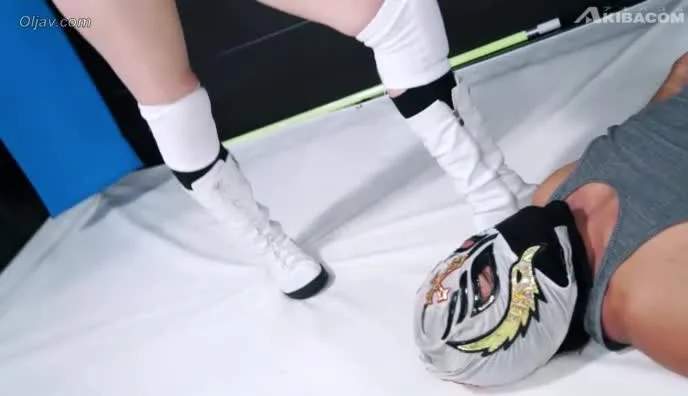 Watch a young Asian couple engage in intense wrestling match in a brightly lit ring, with a focus on their physical struggle and intimate moments.
