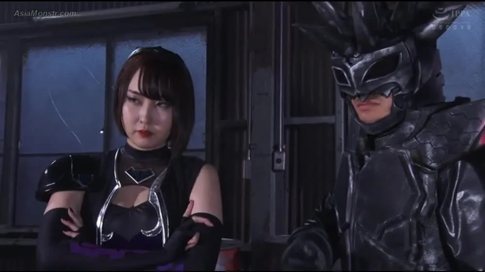 Watch two Asian performers in elaborate costumes engaging in intimate interactions in industrial settings, both indoors and outdoors.