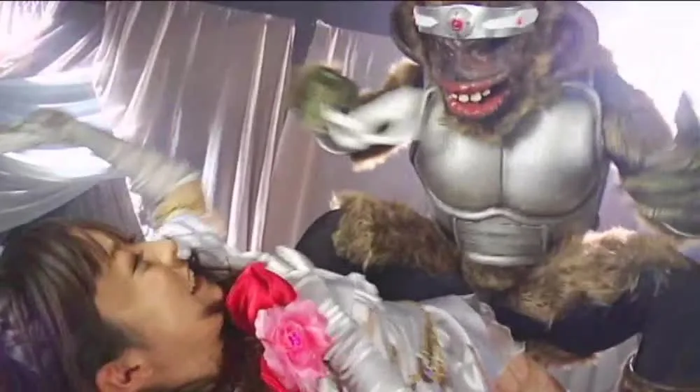 Watch two Asian performers in their 20s engage in an intimate pose, dressed in costumes and masks, in this explicit video.