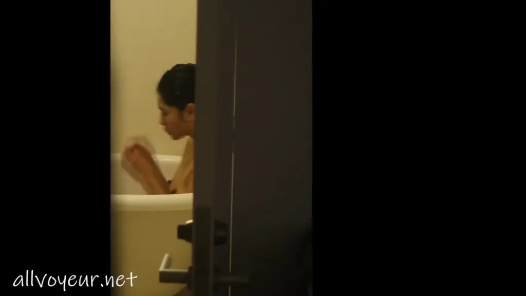 Watch an Asian girl bathe and masturbate in a dimly lit bathroom, captured in POV medium shots.