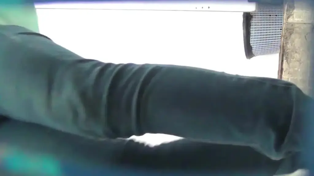Watch a slim Asian girl expose her underwear while adjusting pants in a bright bathroom setting