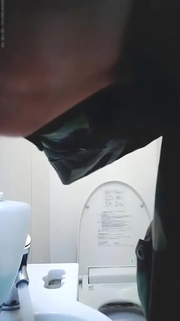 Watch an Asian girl with long dark brown hair in a bathroom setting, posing and interacting with the camera in various shots.