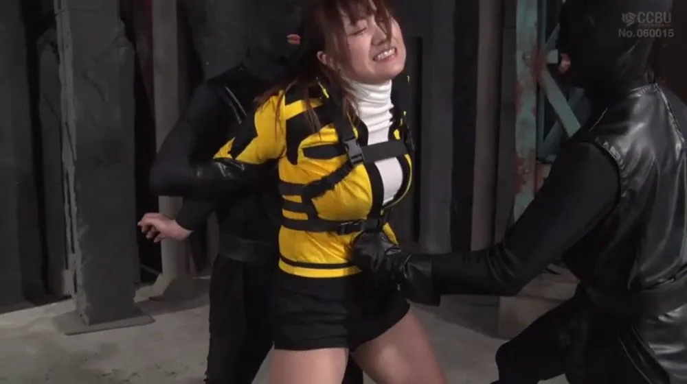 Asian Girl in Black and Yellow Jacket Bondage Scene