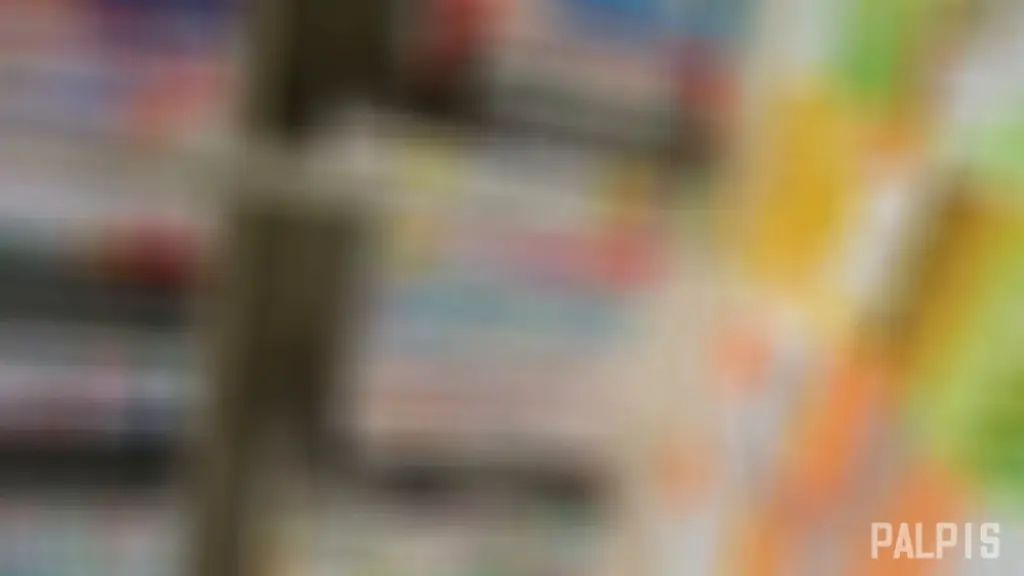 Watch an Asian girl with long black hair wearing a checkered skirt in a store with fluorescent lighting