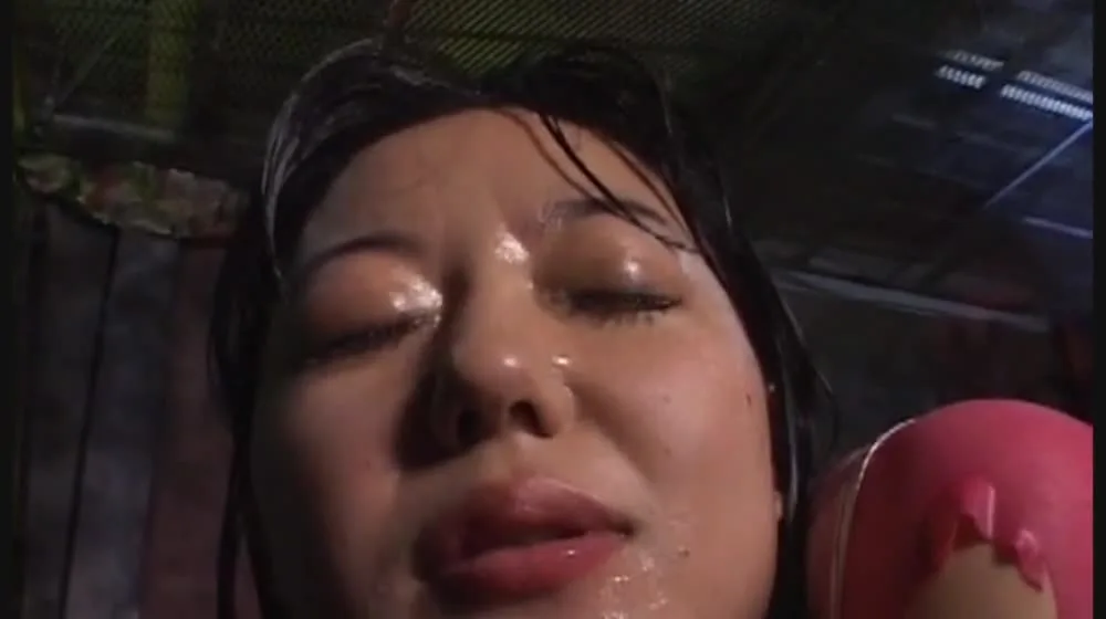 Watch an Asian girl in her 20s, with long black hair, in a distressing industrial setting with metal bars and low lighting, engaging in a sexual act with a costumed male.