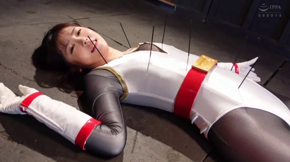 Watch an Asian girl in her 20s with long straight brown hair in an industrial setting with machinery and needles