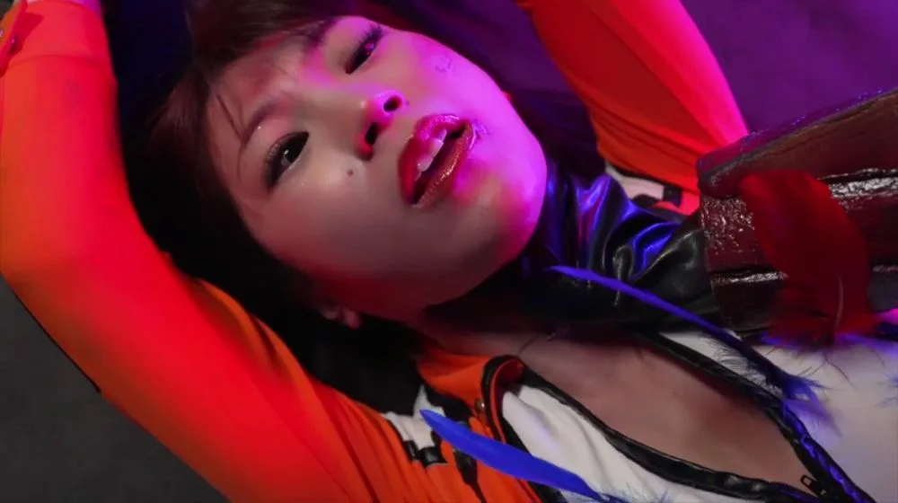 Watch an Asian girl in an orange and white jumpsuit interact with a robot and a person in dark armor in a series of intense scenes.