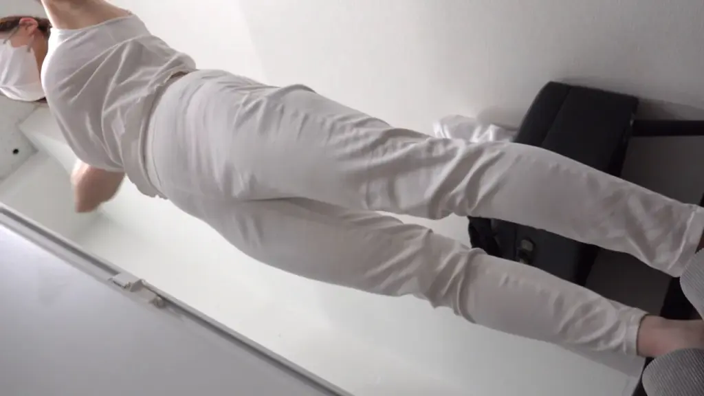 Watch an Asian girl undressing and getting ready in a locker room, wearing a white face mask and pink underwear
