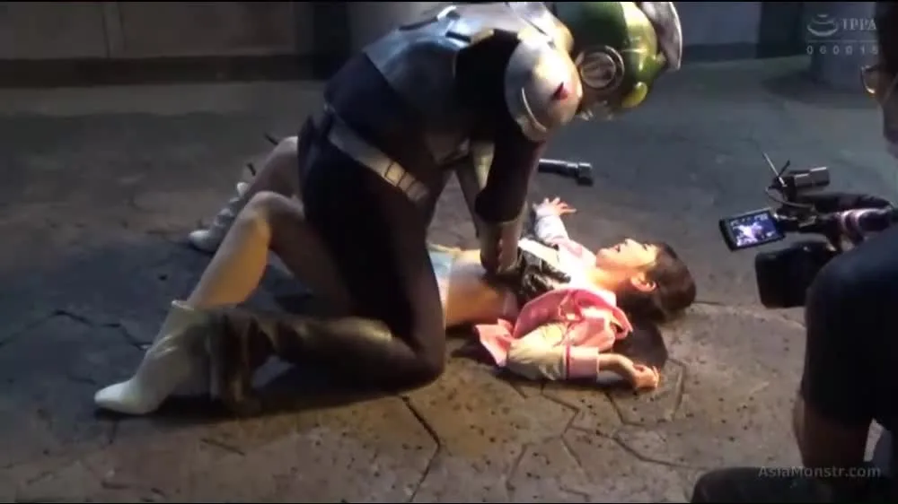 Watch an Asian girl in a pink top and costumes in a series of forest and studio scenes with restraints and gun props