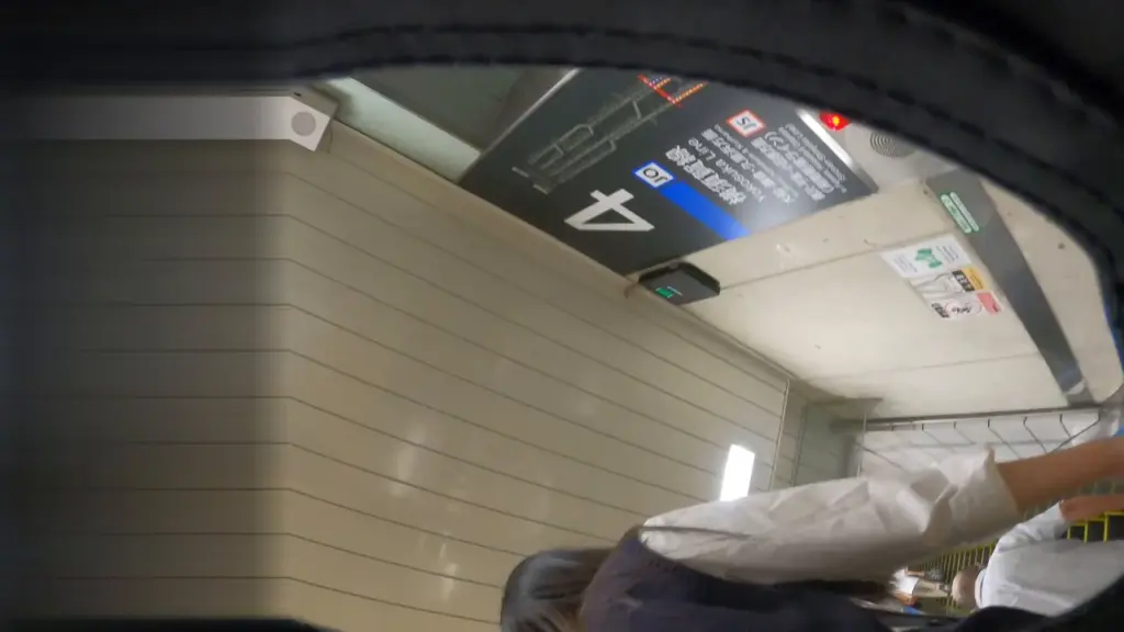 Watch an Asian girl in her 20s with long brown hair in a subway station, bending and adjusting her clothing in this POV video.