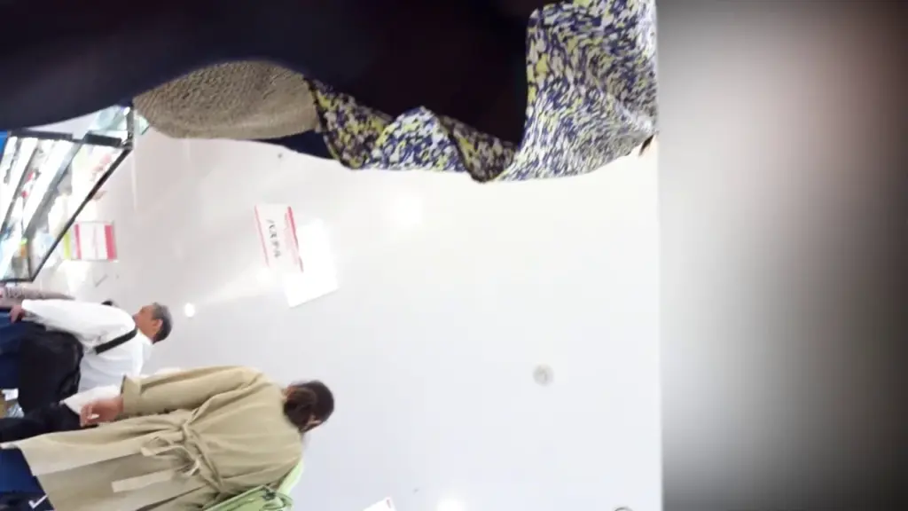Watch an Asian woman in her 20s lift her skirt and sit with legs spread...