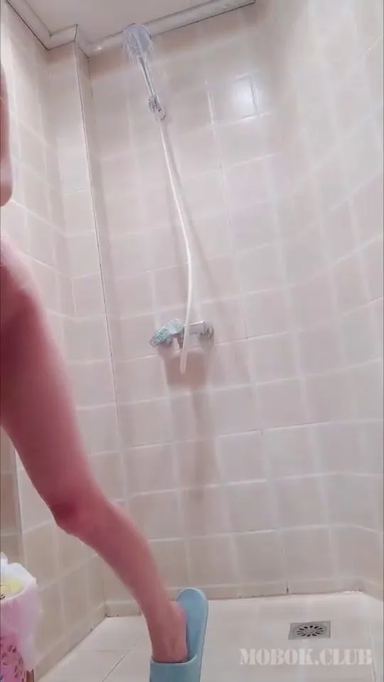 Watch a stunning Asian girl tease in the shower, showcasing her slim figure and straight black hair in a bright bathroom setting