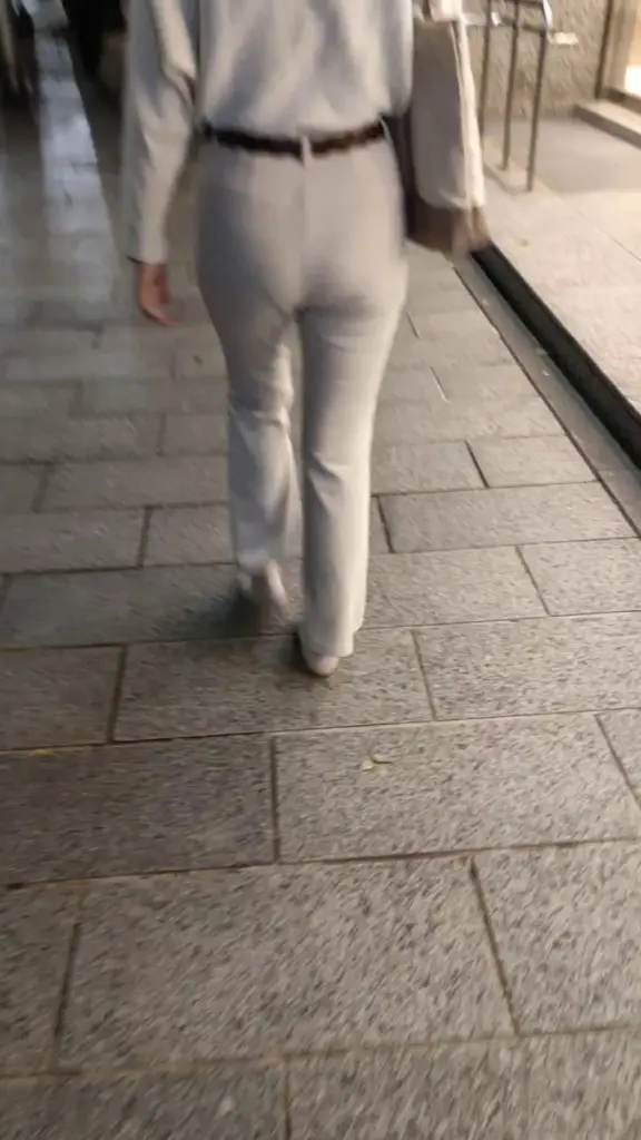 Watch a slim Asian girl in her 20s walking in a public area from a unique POV angle