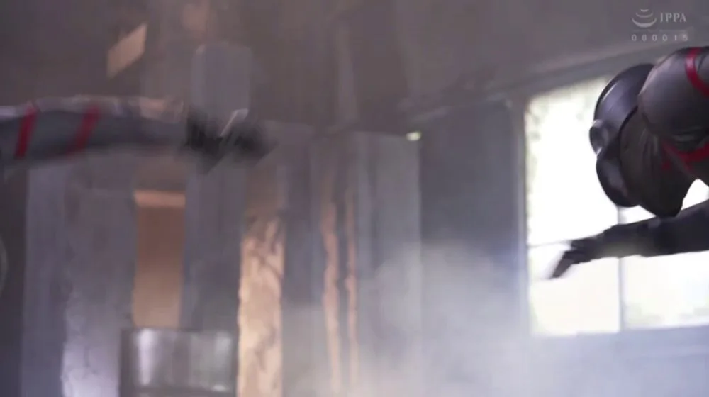 Watch an Asian girl interact with masked males in a forest and indoor setting, explicit content ahead