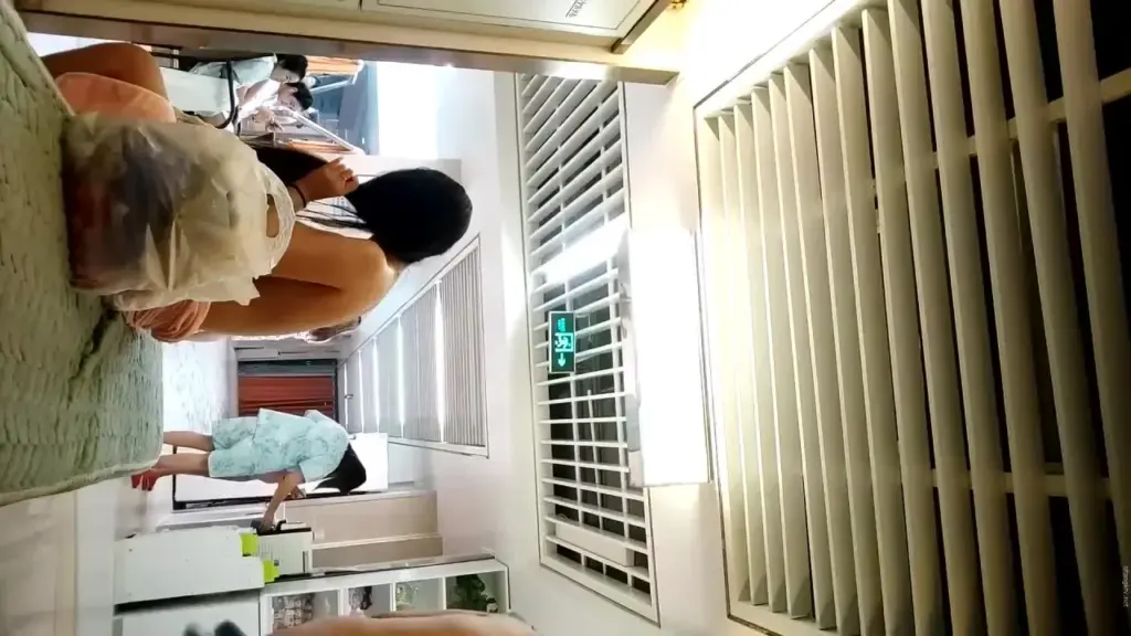 Watch slim Asian girls getting changed in a locker room with natural lighting. Explicit content featuring young women.