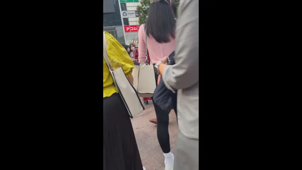 Watch Asian girls in their 20s walking down city streets, carrying bags and wearing tight clothing