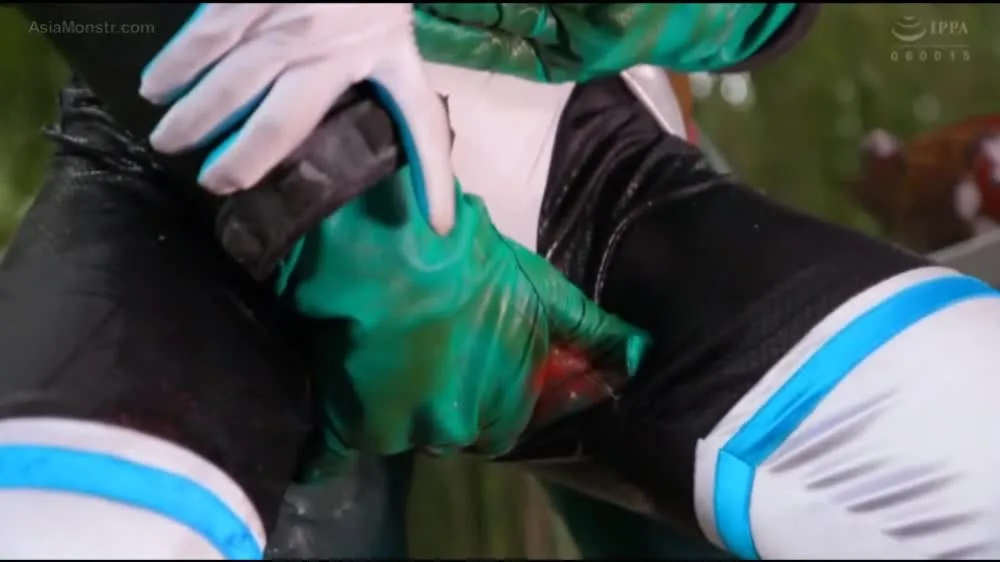 Watch two Asian girls in their 20s with brown hair in ponytails engage in a BDSM scene outdoors with costumes and metal structures