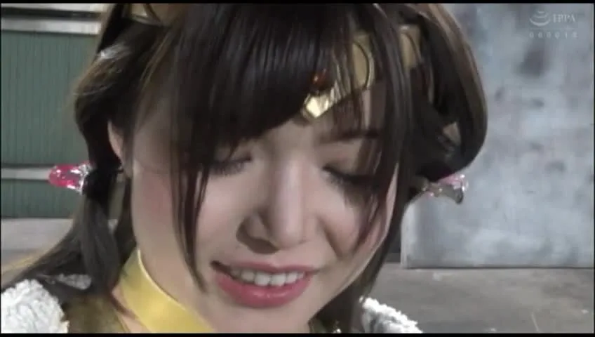 Watch two Asian girls in revealing gold costumes and headbands pose and smile in a studio setting, with close-up shots and varying hairstyles.