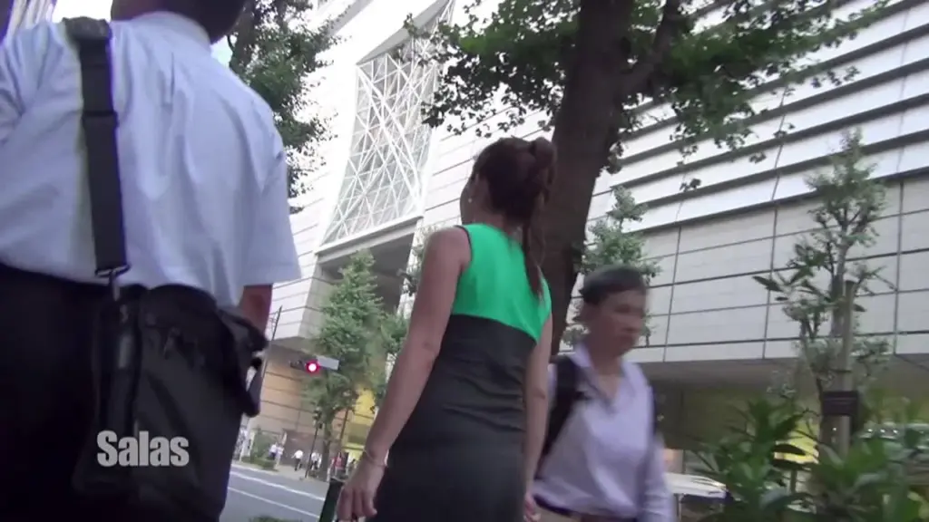 Watch young Asian women in their 20s walking down the city street in tight skirts and revealing tops