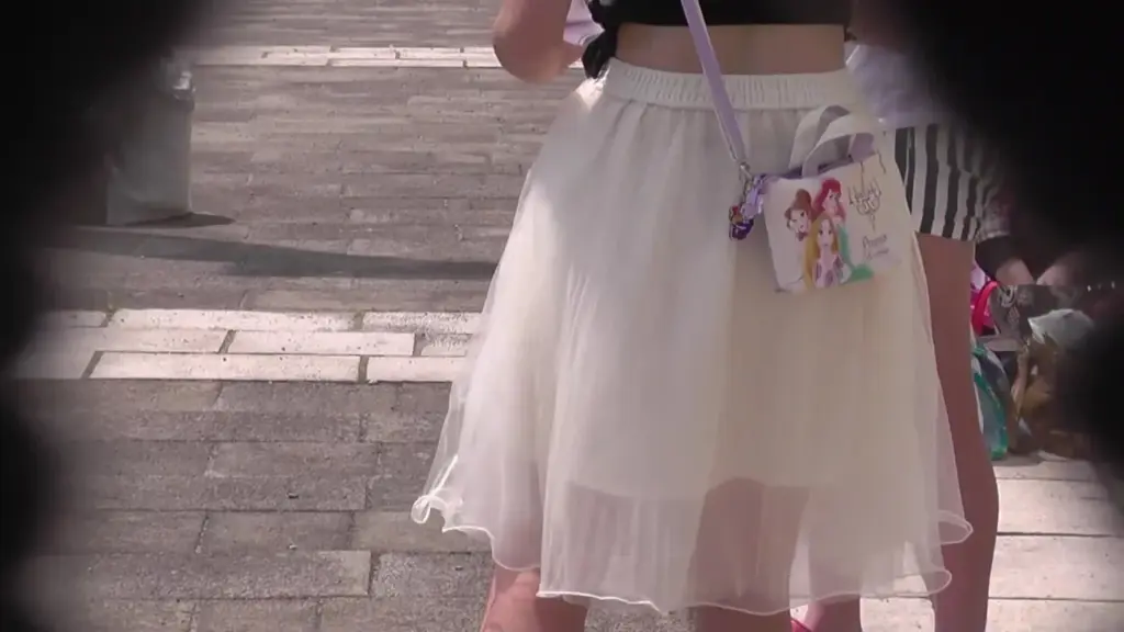 Watch two Asian girls in white skirts interacting on the street, captured in various angles and shots under natural light.