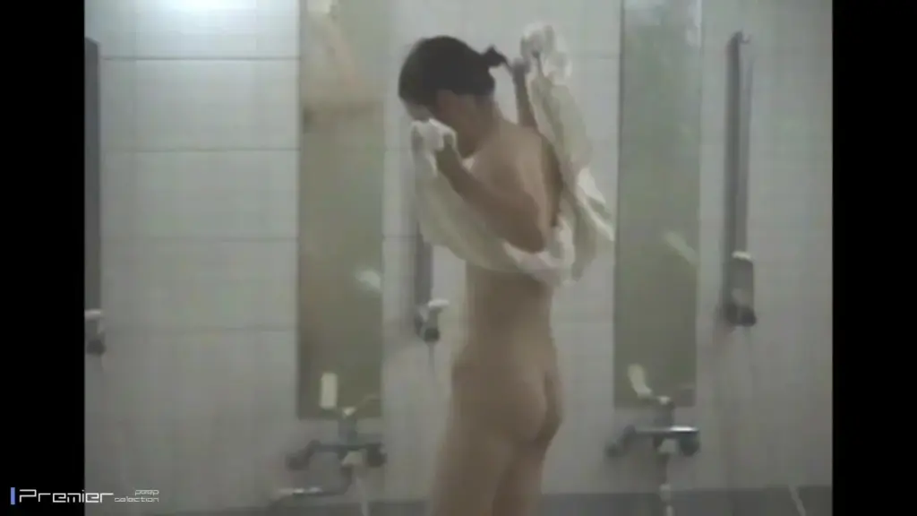 Watch two Asian girls showering and drying off in a steamy bathroom, captured in POV