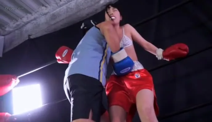 Watch two Asian girls engage in a fierce wrestling match, wearing boxing gloves and lingerie, in a dimly lit ring.